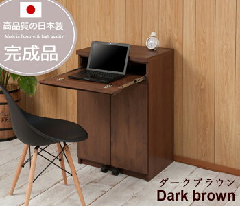 デスク 幅60 日本製 完成品 キャビネット 収納 アルダー材 スライドレール 天然木 ナチュラル 家具 学習デスク 省スペース 小型 コンパクト 国産品 パソコンデスク 机 おしゃれ リビング 茶 ブラウン 北欧