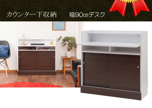 カウンター下 デスク 幅90cm キッチンカウンター 奥行30cm おしゃれ 白 ブラウン 学習机 FAX台 扉付き キャビネット 収納 リビング 台所 ダイニング 学習 シンプル 北欧 キッチンボード 収納庫 キッチン 収納