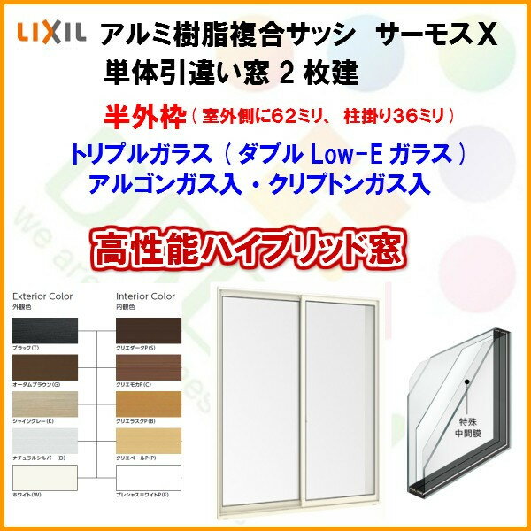 【エントリーでP10倍 23日20時〜28日1時59分まで】樹脂アルミ複合サッシ 引き違い窓 17622 W1800×H2230 LIXIL サーモスX 半外型 トリプルガラス/ダブルLow-Eガラス (クリプトンガス入・アルゴンガス入)