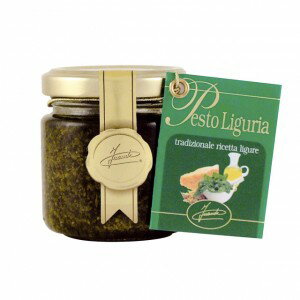 新鮮なバジルの葉をふんだんに使い、伝統的な原材料である松の実を使用しているのが特徴です。