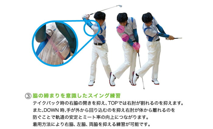 グリップとリストの力を強めるばかりでなく、スイングで最も大切な正しい体重の移動、フットワーク、腰の回転、リズムなどを自然に会得するとともに、自分の悪いクセまで知らぬまに矯正または予防する効能がある
